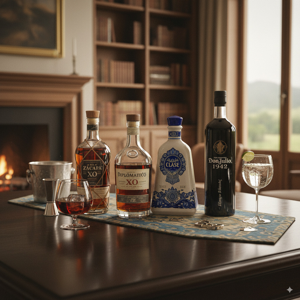 También encontrarás rones añejos como Zacapa XO o Diplomático Reserva Exclusiva, y tequilas premium como Clase Azul Reposado o Don Julio 1942, verdaderas joyas líquidas que elevan cualquier ocasión.