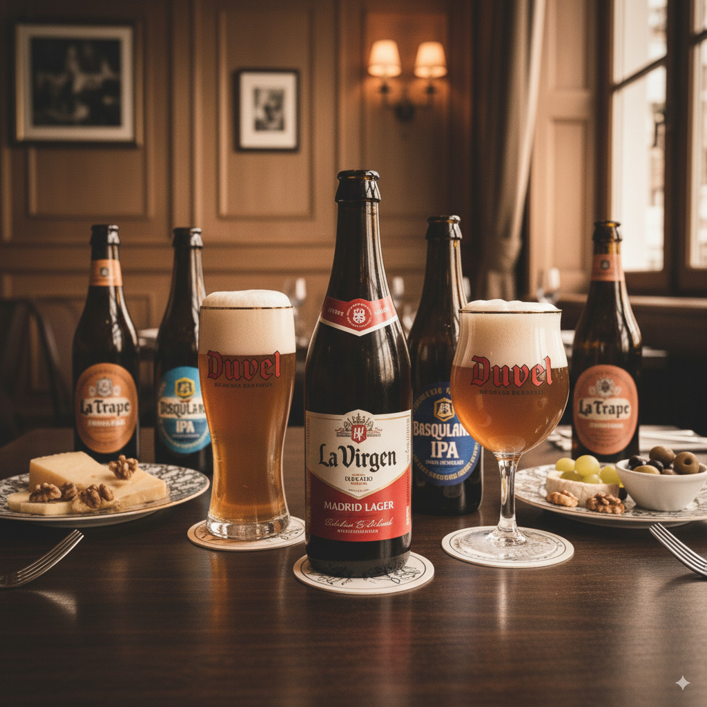 Desde cervezas belgas como Chimay Grande Réserve o Duvel, hasta propuestas artesanales nacionales como La Virgen Madrid Lager o Basqueland Imparable IPA, cada una ofrece una experiencia única.