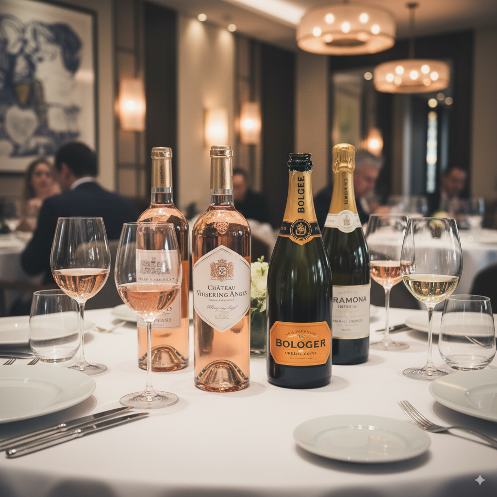 También ofrecemos rosados elegantes como Château d’Esclans Whispering Angel, y espumosos de prestigio como Champagne Bollinger Special Cuvée o Gramona Imperial Brut.