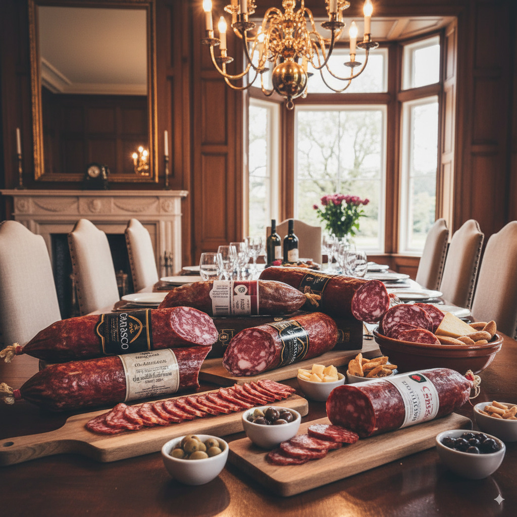 Ofrecemos jamones de bellota 100% ibéricos como Joselito Gran Reserva o Cinco Jotas, y embutidos artesanos como el lomo de bellota Maldonado o el salchichón ibérico de Carrasco Guijuelo. Cada pieza ha sido curada con mimo y tradición, garantizando un sabor profundo, equilibrado y absolutamente inolvidable.